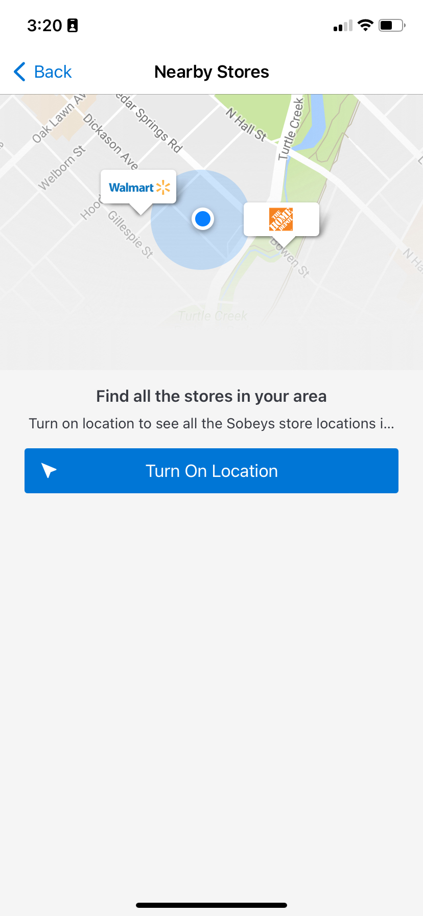 2. select Find Nearby Stores, (turn on Location Services if they are not on yet)