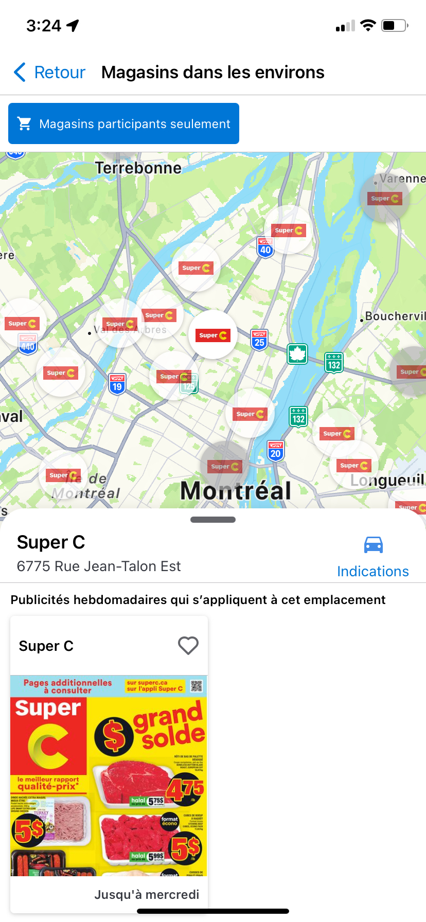 3. You can then choose a store location icon on the map to view the applicable ad, the address and the directions
