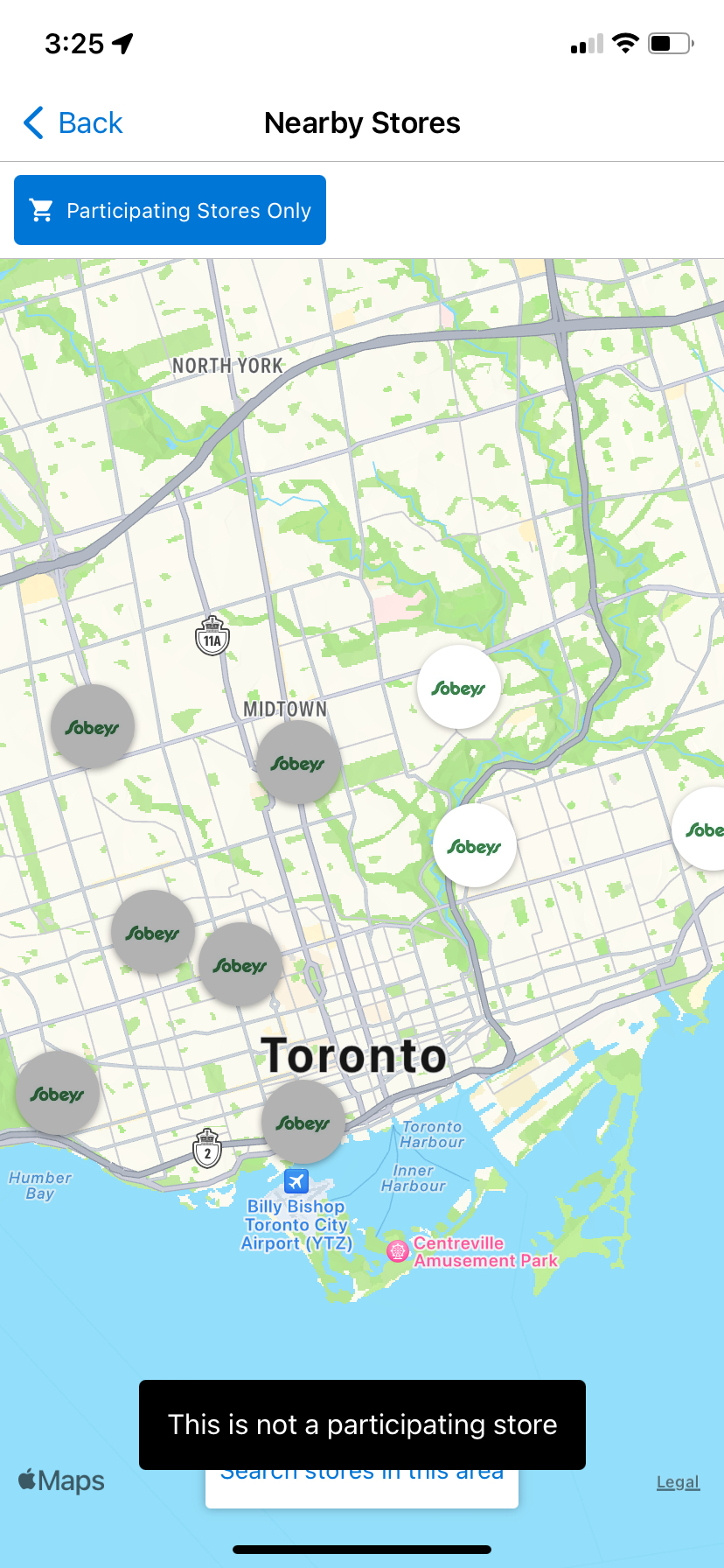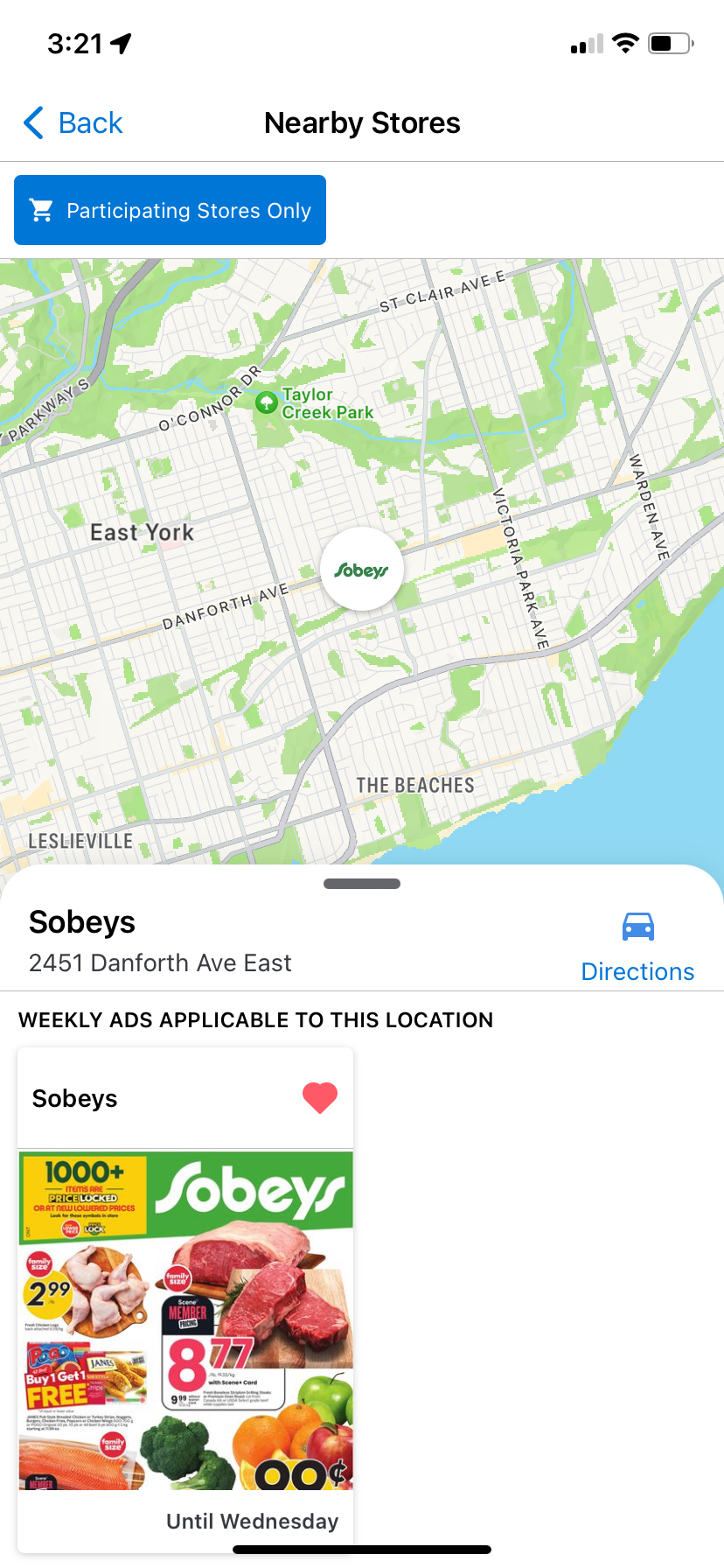 3. Vous pouvez ensuite choisir une icône de localisation de magasin sur la carte pour voir la circulaire applicable, ainsi que son adresse et les directions.