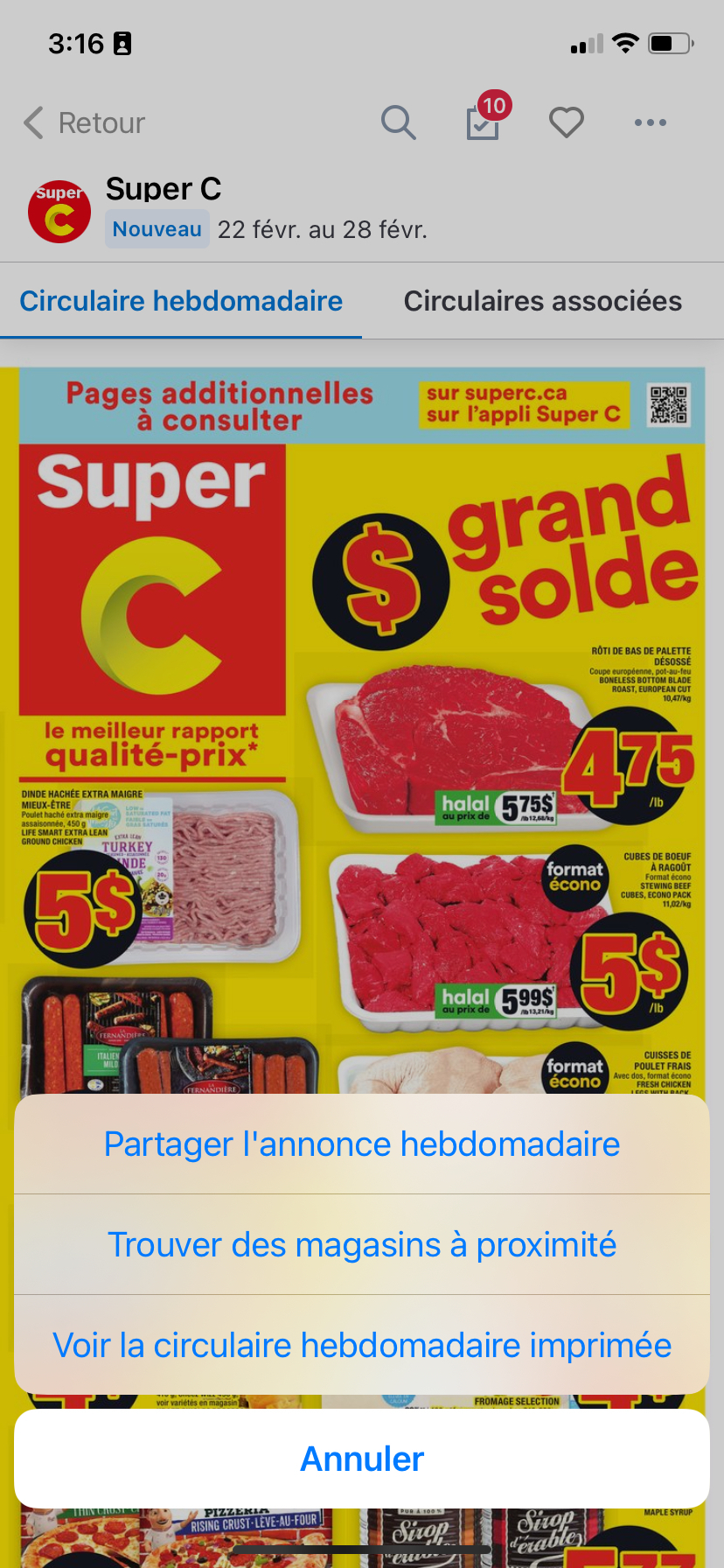 NOTEZ: Si une icône est grisée, cela signifie que la circulaire ne s'applique pas à ce magasin en particulier.